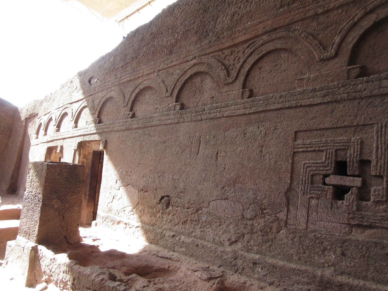 Carved into the northern wall of Bet Maryam's courtyard was the tiny chapel of Bet Meskel or House of the Cross. The ten blind arches on the outside represented the Ten Commandments.
